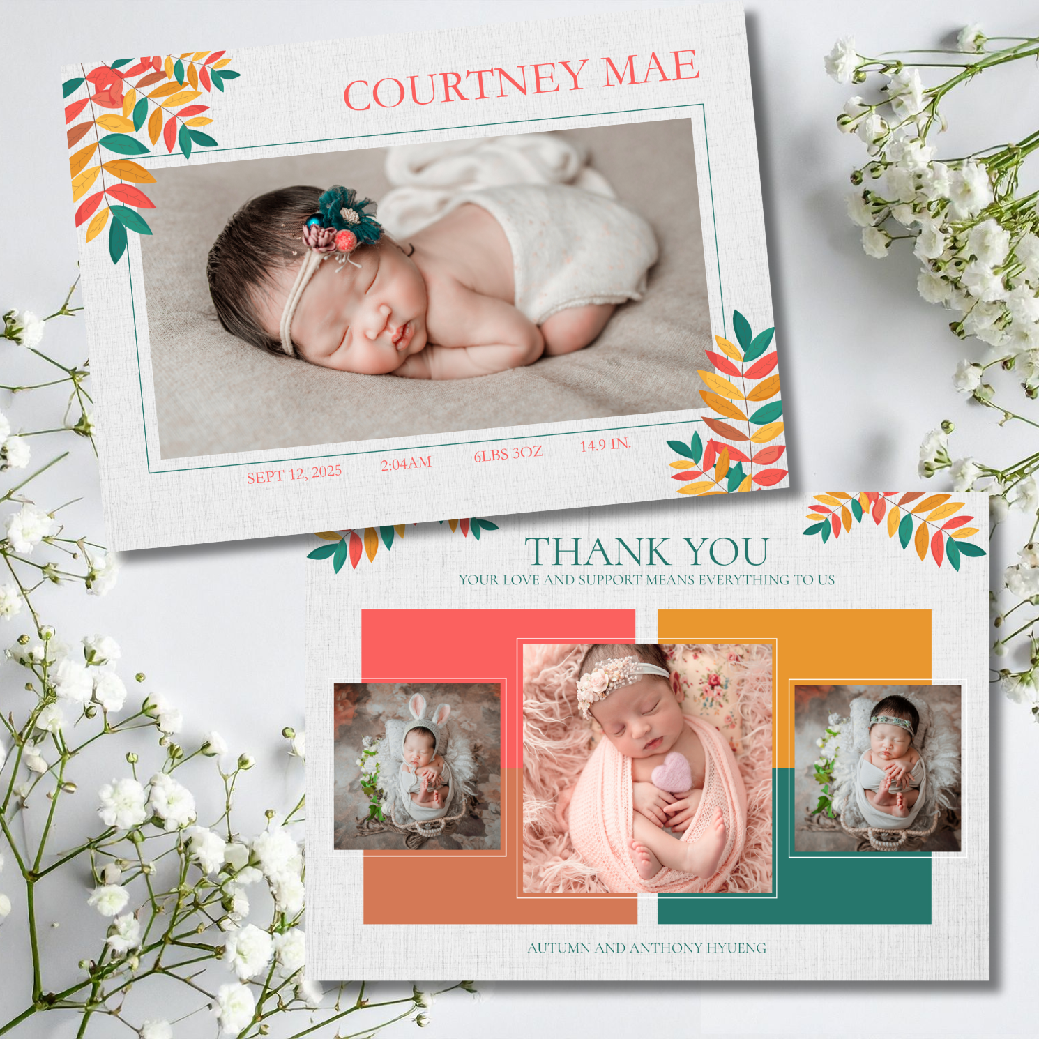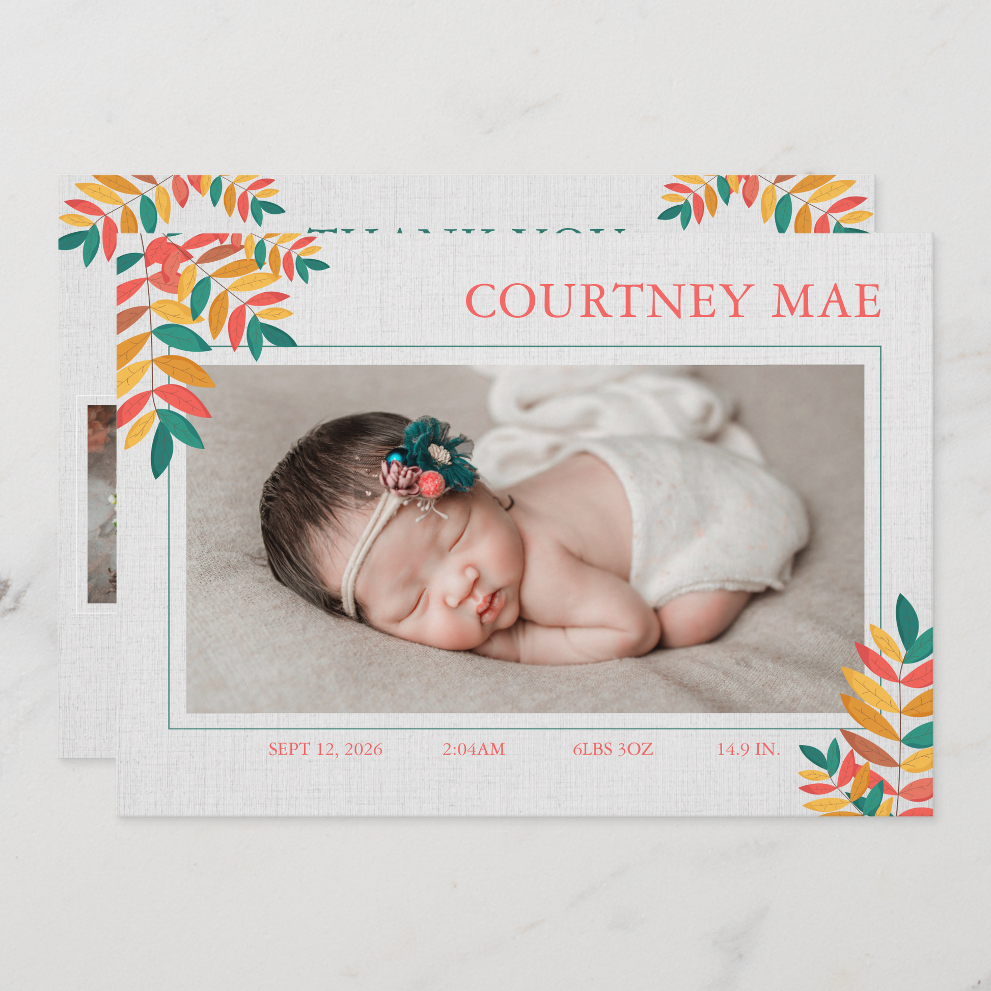 - For professional printing, this invitation is also available on Zazzle. Visit: Colourful Leaves Baby Photo Announcement Card | Zazzle (Please note, some design elements may differ on this platform.)