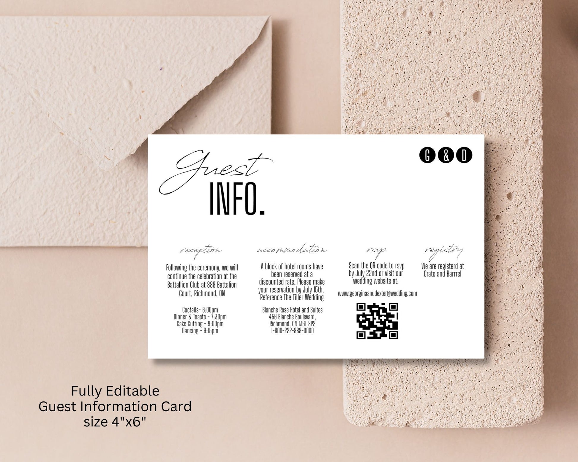 Make your engagement photo the star of the invitation with this contemporary photo wedding invite. Matching guest information card with QR code and the welcome card with special thanks, tribute to those who have passed, order of service and bridal party introductions are added touches that will make your wedding stand out from the rest. Lastly, our beautifully designed thank you card will remind your guests of how magical your day was.