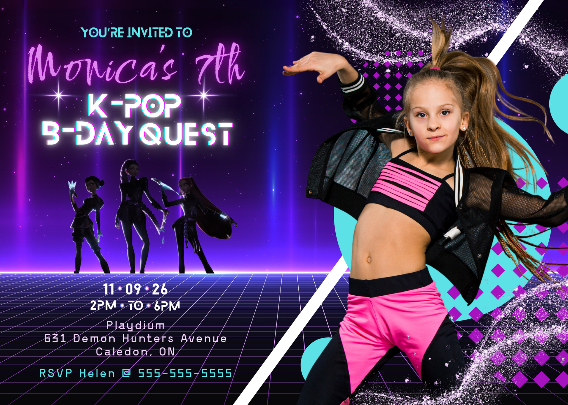 Step into the shadows and celebrate in style with our B-Day Demon Hunters Birthday Invitation. Inspired by bold K-pop aesthetics and dark fantasy vibes, this invite sets the stage for an epic birthday quest. Featuring striking silhouettes, sharp angular lettering, and dramatic design elements, it’s perfect for fans of music, adventure, and unforgettable parties.