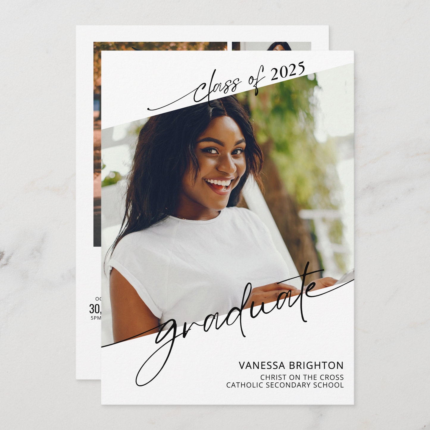 Front: Feature one standout photo of the graduate.