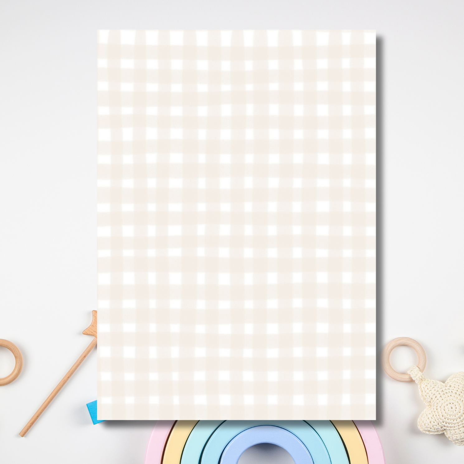 Celebrate the arrival of your little blessing with this elegant and faith-inspired Birth Announcement Card. Featuring a soft neutral gingham background, a delicate arch frame, and your baby’s precious photo, this timeless design is perfect for sharing your joyful news with loved ones.
